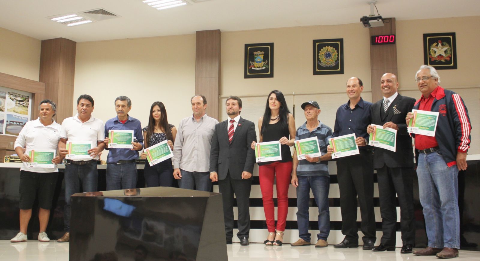 Presidente Eliseu Luis Casanova recebe das mãos do Vereador Moacir Cesar Matiolo.