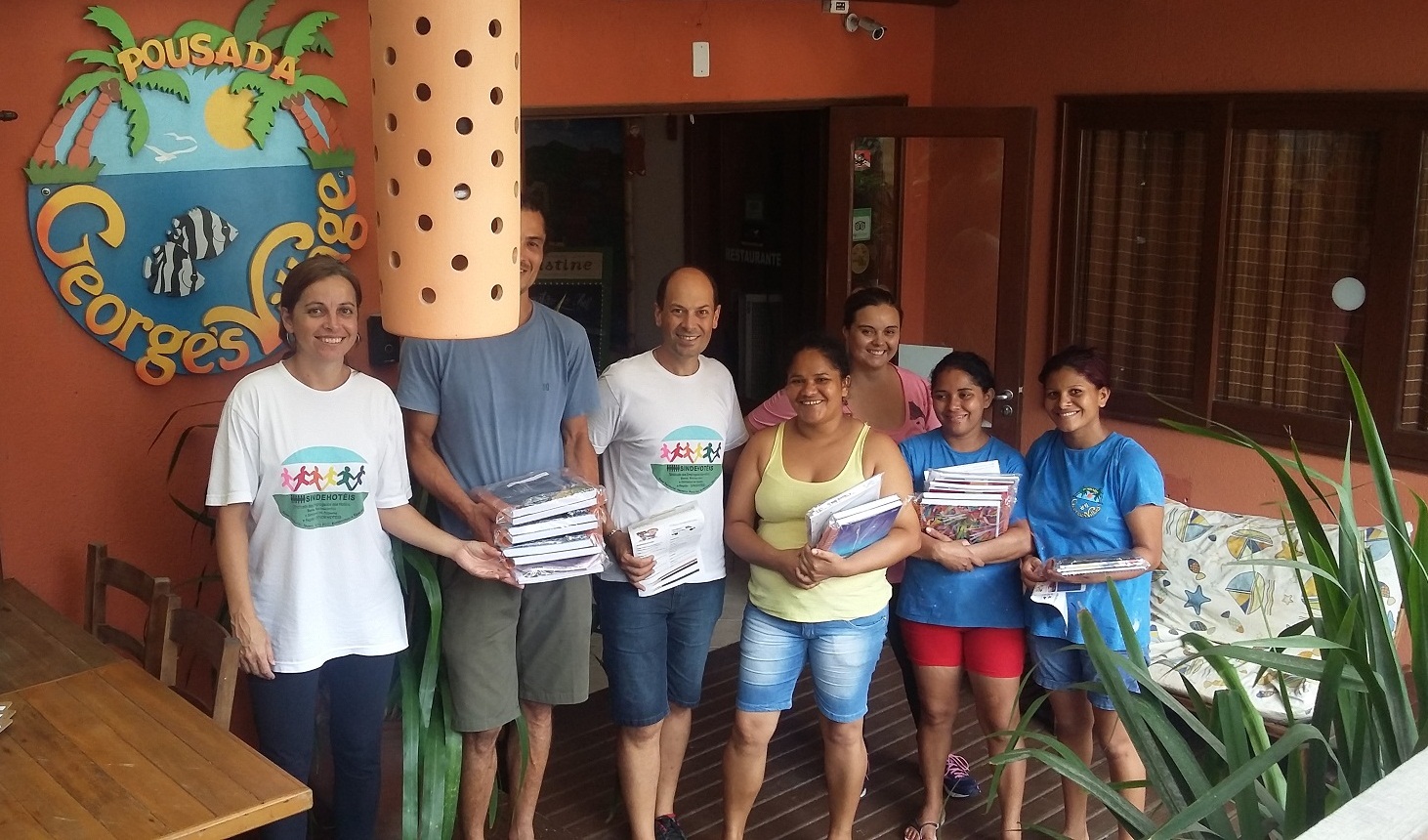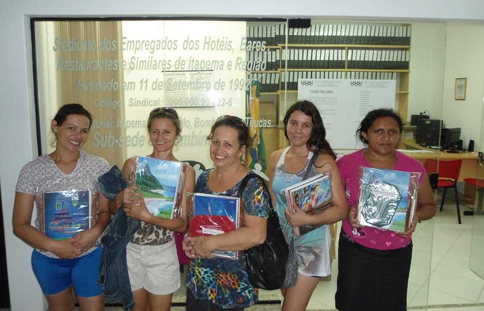 Nesta Campanha do Material Escolar de 2016, a felicidade de mães e pais em ter a visita do sindicato em seus lugares de trabalho, justifica o empenho em entregar e distribuir os kits escolares nos quatro cantos de nossa base territorial (Itapema, Porto Belo, Bombinhas e Tijucas), que tiverem os seguintes itens: {(1ª a 4ª série: 03 cadernos de 48folhas, 01 nécessaire, 01 caderno de caligrafia, 01 caderno de desenho, 01 caixa de lápis de cor, 02 canetas, 02 lápis de escrever com borracha, 01 régua e 01 apontador; (5ª série ao ano superior: 02 cadernos capa dura 200 folhas, 01 nécessaire, 02 canetas (vermelha e azul), 01 caneta marca texto, 02 lápis de escrever com borracha, 01 régua e 01 apontador)}. A intenção é que ano após ano, vamos aperfeiçoando com a ajuda das companheiras e companheiros trabalhadores da categoria. Um futuro melhor, começa com a classe trabalhadora unida de braços dados, ao encontro das salas de aulas.