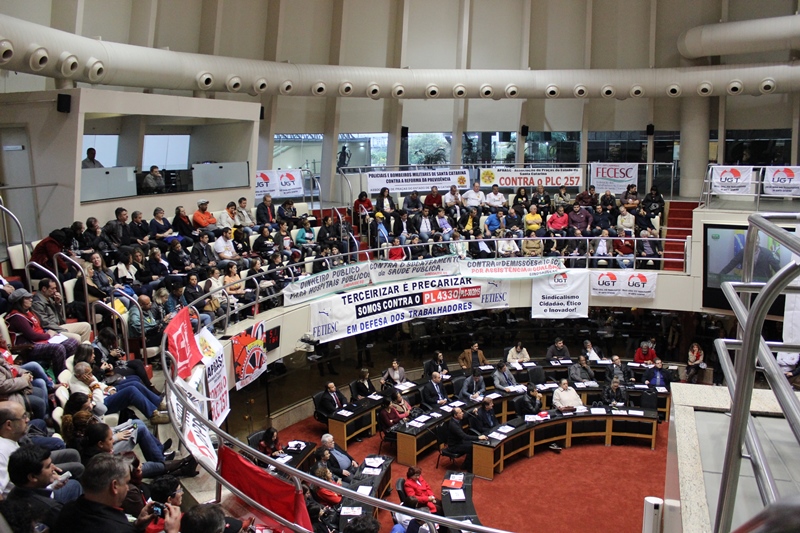 O Presidente da Fetiesc, Idemar Antonio Martini é contra a aprovação do projeto da terceirização e ressalta que o projeto é para os patrões e não para os trabalhadores (as) “é um projeto que amplia a ganância de quem detém o poder, um PL de quem não quer o bem do Brasil e da classe trabalhadora” e reforça “retirar direitos nunca foi e nunca será atitude de um governo para o povo”.