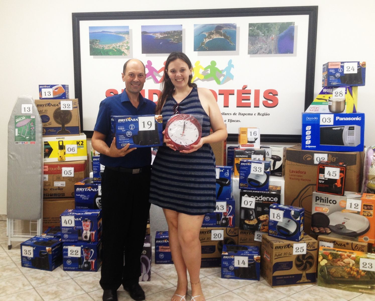 Na última quarta feira (18 de janeiro corrente) PATRICIA MAI da empresa Amor Du Café de Itapema, que está grávida de um menino, que vai se chamar Luis Miguel, recebeu uma BATEDEIRA e um RELÓGIO PERSONALIZADO DO SINDICATO, sorteado no dia 20/12/2016, das mãos de nosso presidente Eliseu Luis Casanova, na Sede em Itapema.