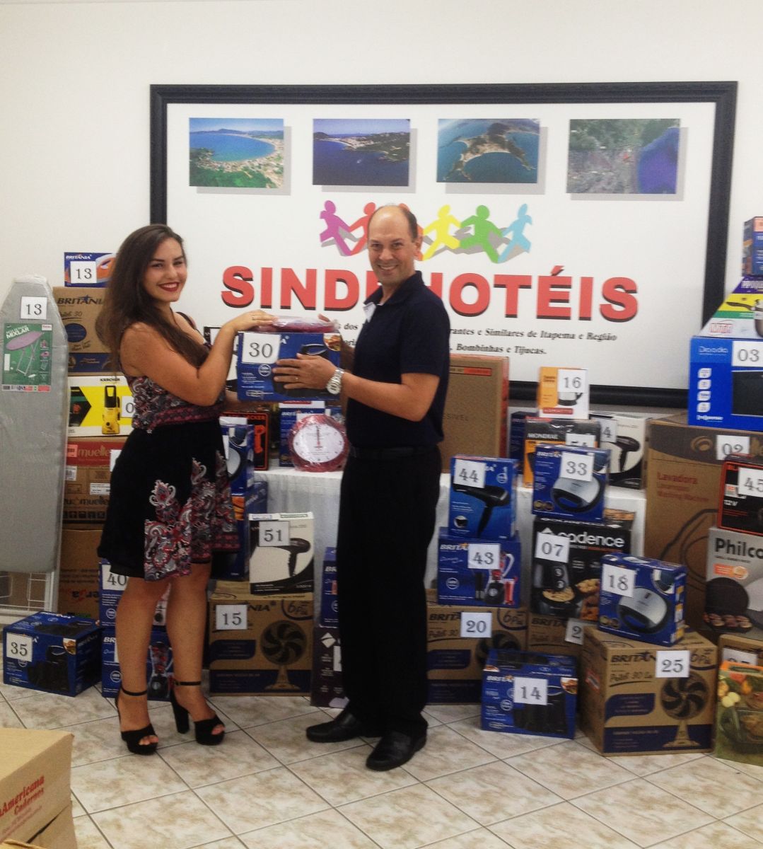 No dia de ontem (quinta feira -19 de janeiro) EVLIN BEKRENS da empresa Pizzaria Pilequinho da cidade de Itapema, recebeu uma BATEDEIRA e um RELÓGIO PERSONALIZADO DO SINDICATO, sorteado no dia 20/12/2016, das mãos de nosso presidente Eliseu Luis Casanova, na Sede em Itapema.