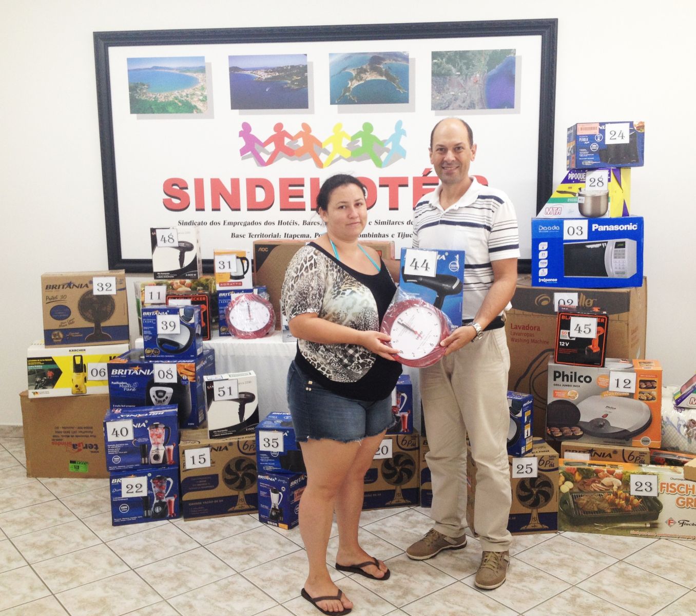 No dia de ontem (terça feira - 24 de janeiro) MARISTELA PIMENTEL LISBOA da empresa Bar do Wilsinho do centro da cidade de Tijucas, recebeu um SECADOR DE CABELO e um RELÓGIO PERSONALIZADO DO SINDICATO, sorteado no dia 20/12/2016, das mãos de nosso presidente Eliseu Luis Casanova, na Sede em Itapema.