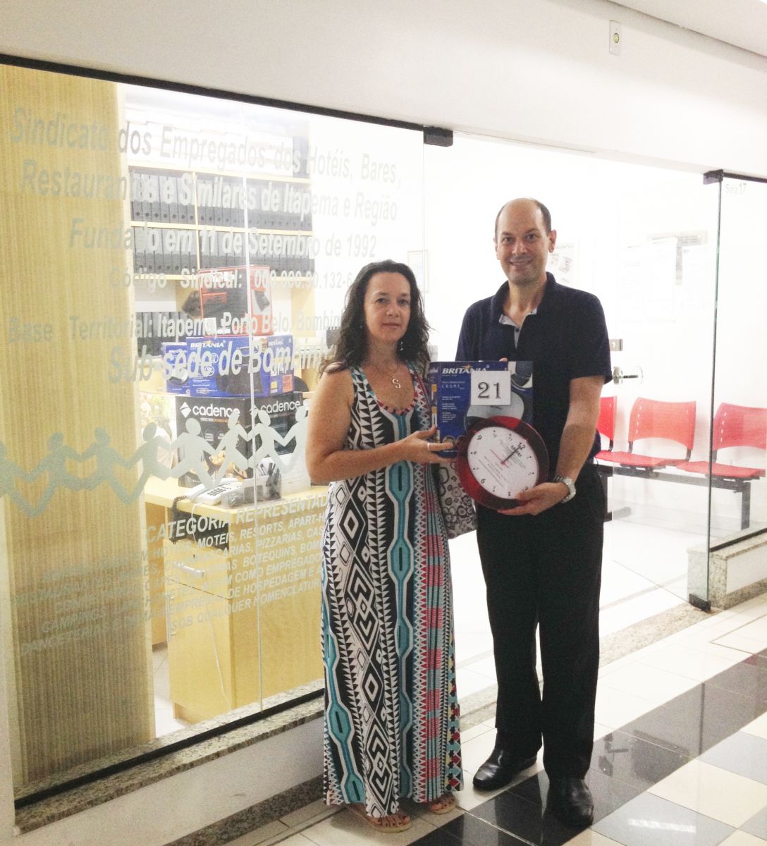 Presidente Eliseu Luis Casanova, entregando no dia 30 de janeiro de 2017 (segunda feira) o prêmio na Sub Sede Bombinhas a SIMONE SOARES LIMA da empresa Mauna Lani Pousada e Lazer, do bairro Bombas da cidade Bombinhas, que foi contemplada com uma SANDUICHEIRA e um RELÓGIO PERSONALIZADO, sorteado no último dia 20/12/2016.