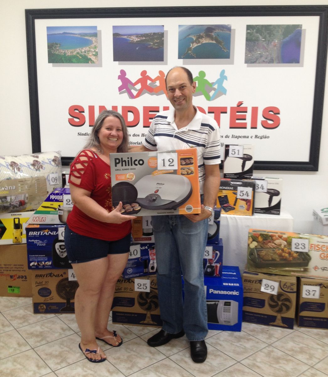 No dia de hoje (quarta feira - 01 de fevereiro) SONIA APARECIDA PETROWICZ da empresa CHURRASCARIA LITORAL GRILL, do bairro pereque da cidade de Porto Belo, recebeu um GRILL JUMBO, sorteado no dia 20/12/2016, das mãos de nosso presidente Eliseu Luis Casanova, na Sede em Itapema.