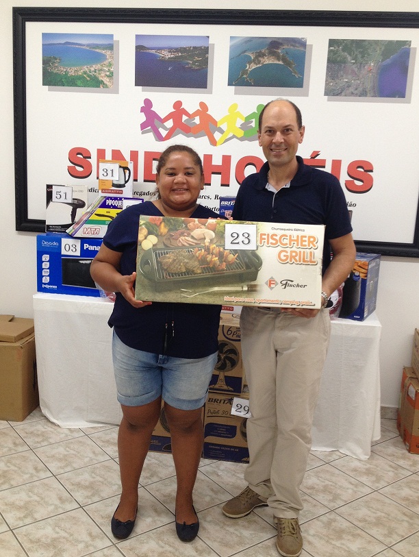 Presidente Eliseu Luis Casanova, entregando prêmio na Sede de Itapema a MARIA MONICA DOS SANTOS da empresa Pousada Vila Verde, do bairro pereque da cidade Porto Belo, que foi contemplada com uma CHURRASQUEIRA ELÉTRICA, sorteada no último dia 20/12/2016.