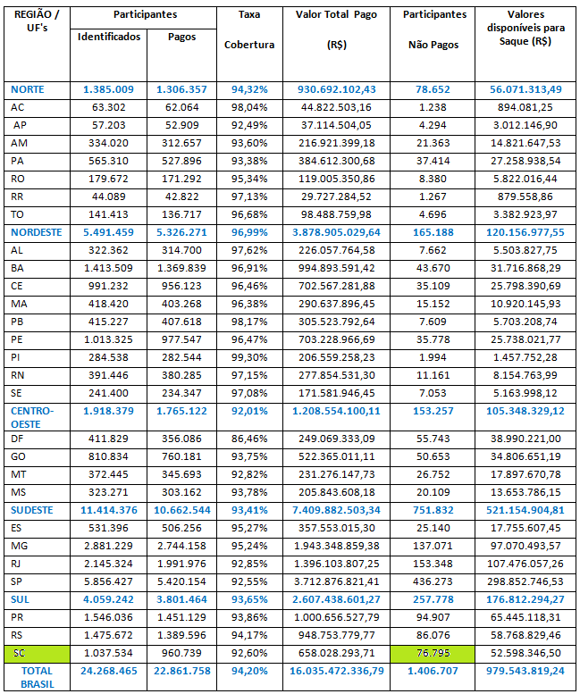 Os trabalhadores com direito ao PIS ano-base 2015 têm menos de 10 dias para sacar o benefício nas agências bancárias. O prazo termina no dia 28 de dezembro e não haverá nova prorrogação. Cerca de 1,4 milhão inscritos no PIS e no Pasep não haviam sacado o dinheiro até o final de novembro. O valor disponível soma R$ 979,54 milhões. Em Santa Catarina, quase 77 mil trabalhadores não sacaram o PIS. (veja tabela abaixo).