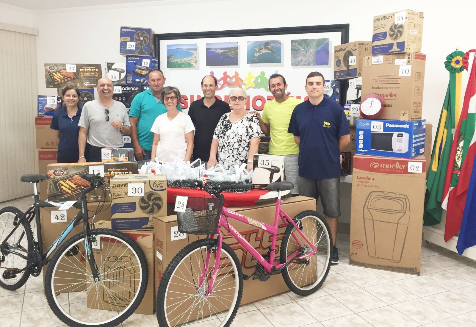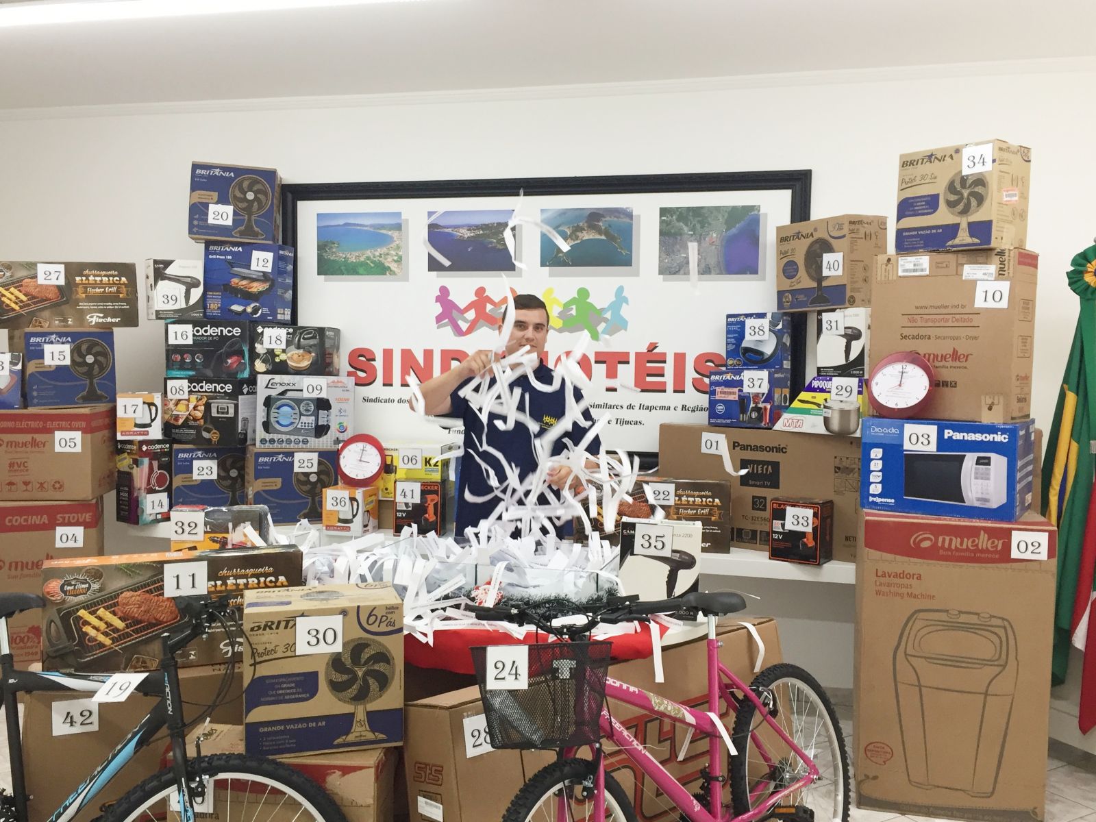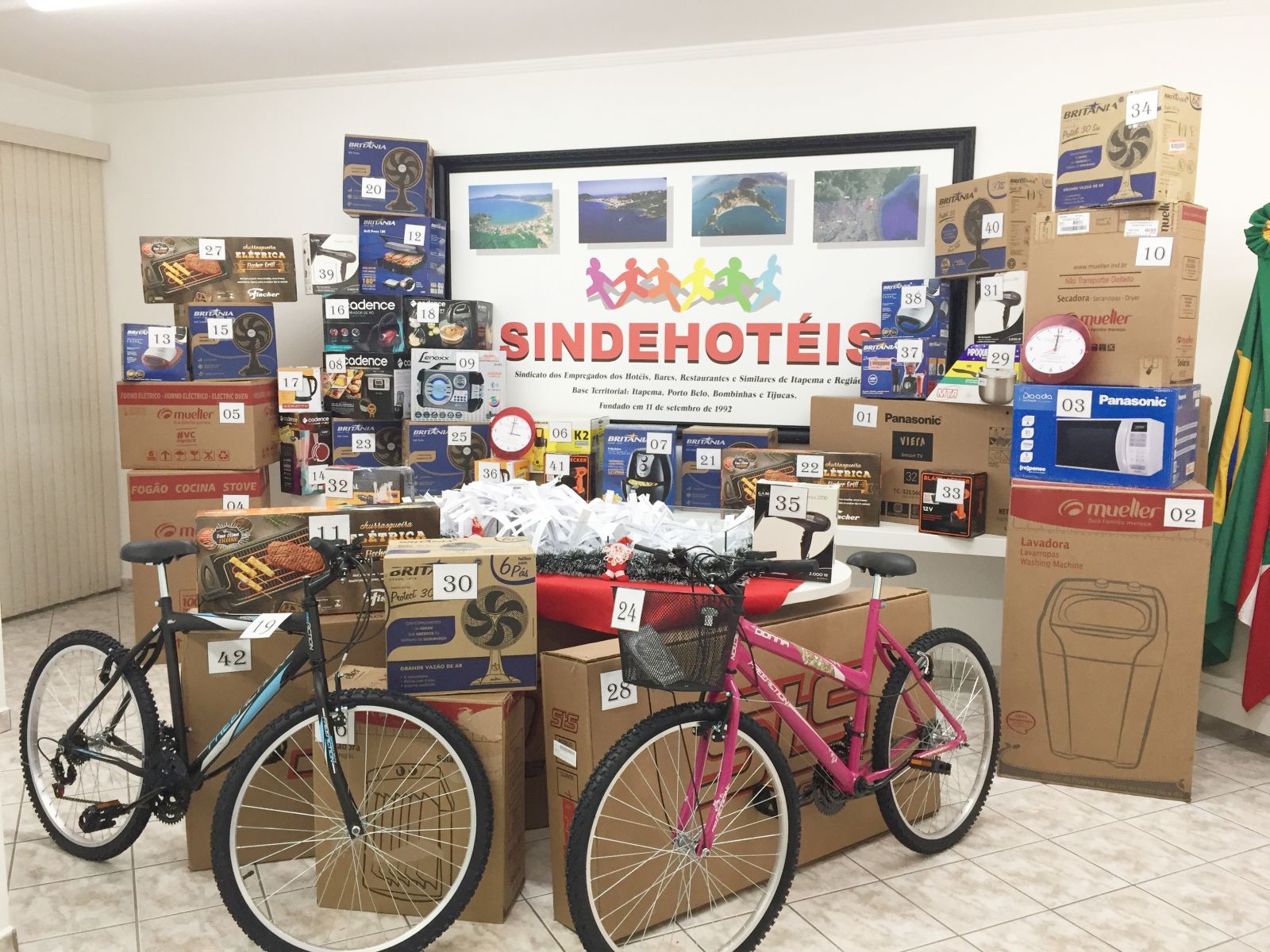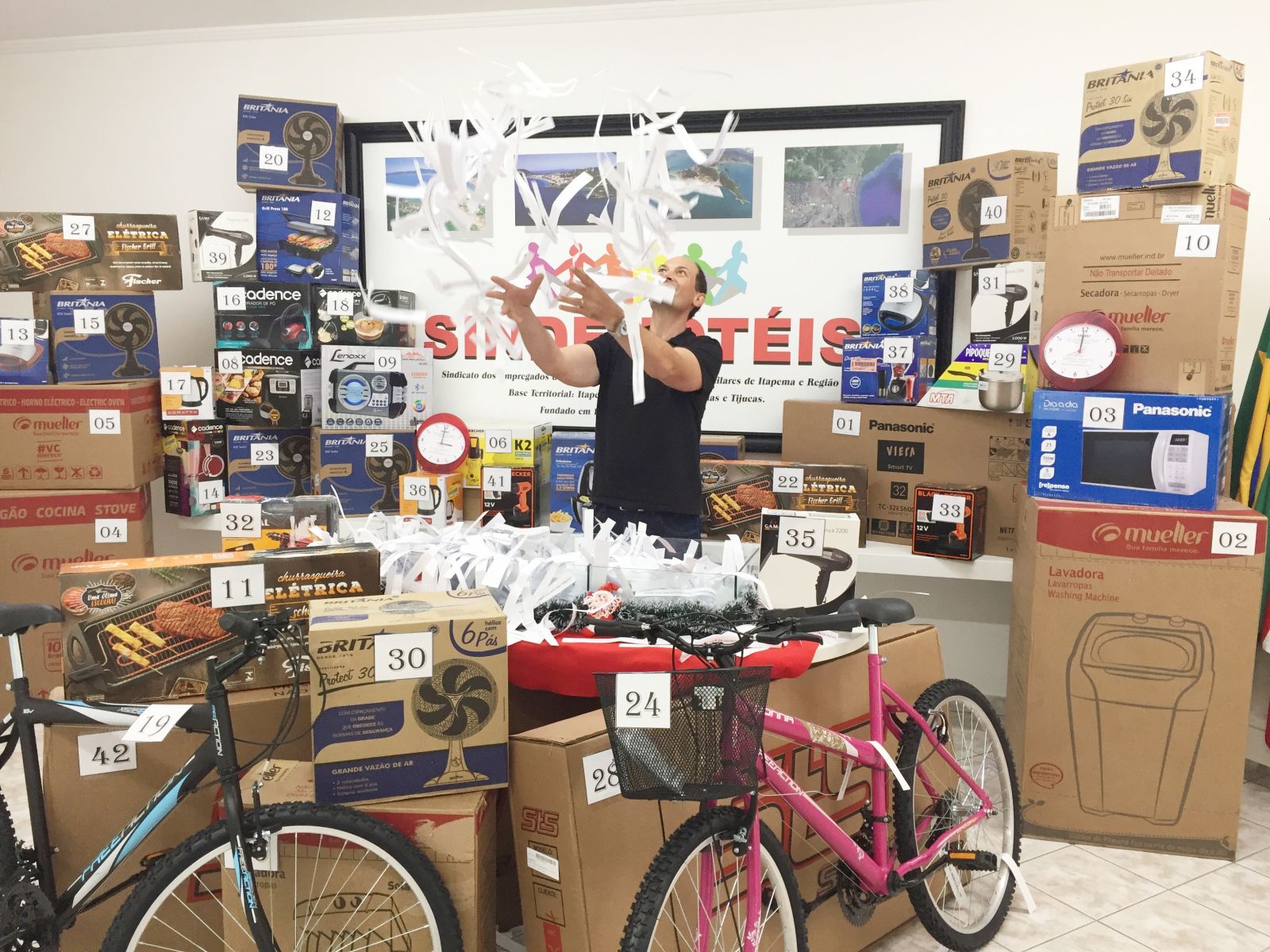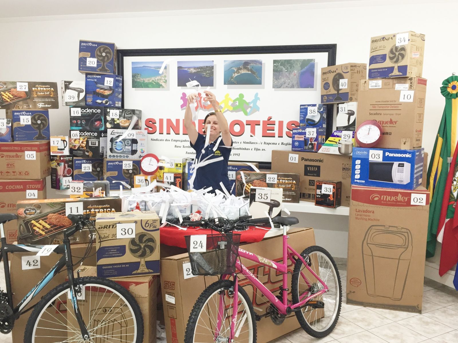 Pelo quarto ano consecutivo o Sindicato dos Empregados em Hotéis, Bares, Restaurantes e Similares de Itapema, Porto Belo, Bombinhas e Tijucas, realizou nesta sexta feira (22 de dezembro de 2017), atividade formativa e grande sorteio de prêmios entre os trabalhadores associados. O evento foi para celebrar o Natal e o Ano Novo e aconteceu às 15 horas, na sede da entidade (Rua 120, número 136, Edifício Estrela Azul, Sala 104/105). Segue abaixo a lista dos trabalhadores contemplados e estes (trabalhadores contemplados) terão o prazo impreterivelmente de 60 (sessenta) dias para retirada do respectivo prêmio na Sede do sindicato em Itapema, com a apresentação da Carteira de Trabalho. Após essa e em não sendo retirado o prêmio, este ficará a disposição para futuras promoções sociais.