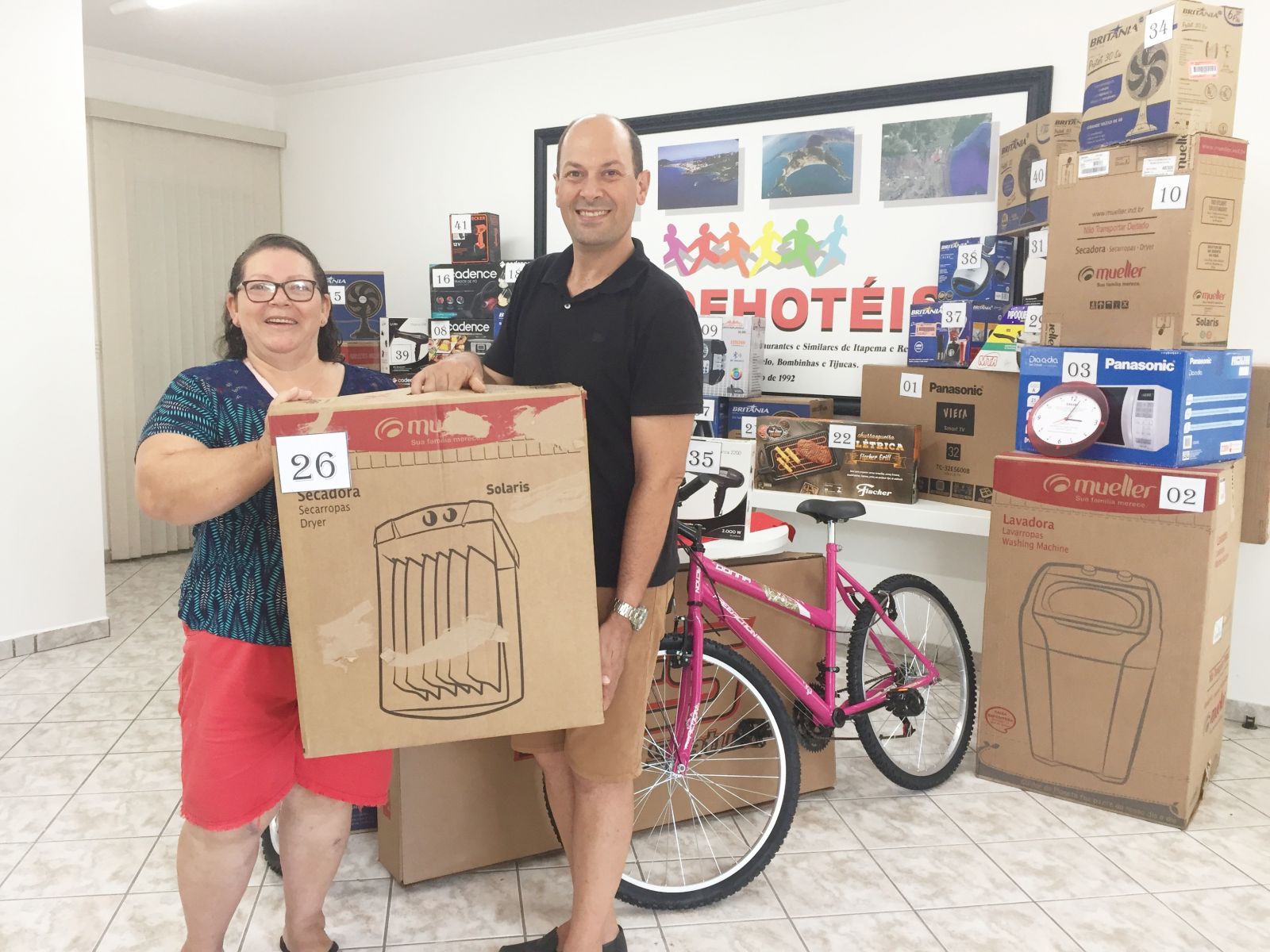 Nesta tarde de segunda feira (15 de janeiro) JUREMA TEREZINHA DE AMORIM da empresa Café Colonial Tirolez, do bairro ilhota da cidade de Itapema, recebeu uma SECADORA DE ROUPAS 8KG. MUELLER , sorteado na atividade formativa de encerramento de final de ano 2017, na sede da entidade no dia 22/12/2017, das mãos de nosso presidente Eliseu Luis Casanova, na Sede em Itapema.
