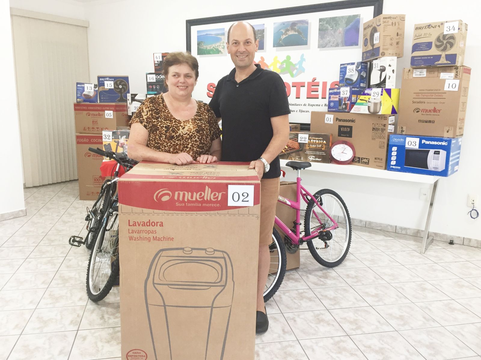 Nesta tarde de segunda feira (15 de janeiro) IVONETE WENSING VANDERLINDE da empresa Restaurante Alberto’s , do bairro meia praia da cidade de Itapema, recebeu um LAVA ROUPA MUELLER 8KG POPMATIC BR, sorteada na atividade formativa de encerramento de final de ano 2017, na sede da entidade no dia 22/12/2017, das mãos de nosso presidente Eliseu Luis Casanova, na Sede em Itapema.