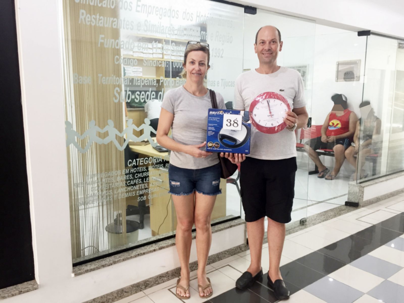 Nesta quarta feira de tarde (17 de janeiro) IVETE TERESINHA STEINMETZ da empresa Pousada Caracol, do bairro bombas da cidade de Bombinhas, recebeu um GRILL SAND BRITANIA – 16 + RELÓGIO PERSONALIZADO, sorteada na atividade formativa de encerramento de final de ano 2017, na sede da entidade no dia 22/12/2017, das mãos de nosso presidente Eliseu Luis Casanova, na Sub Sede em Bombinhas.