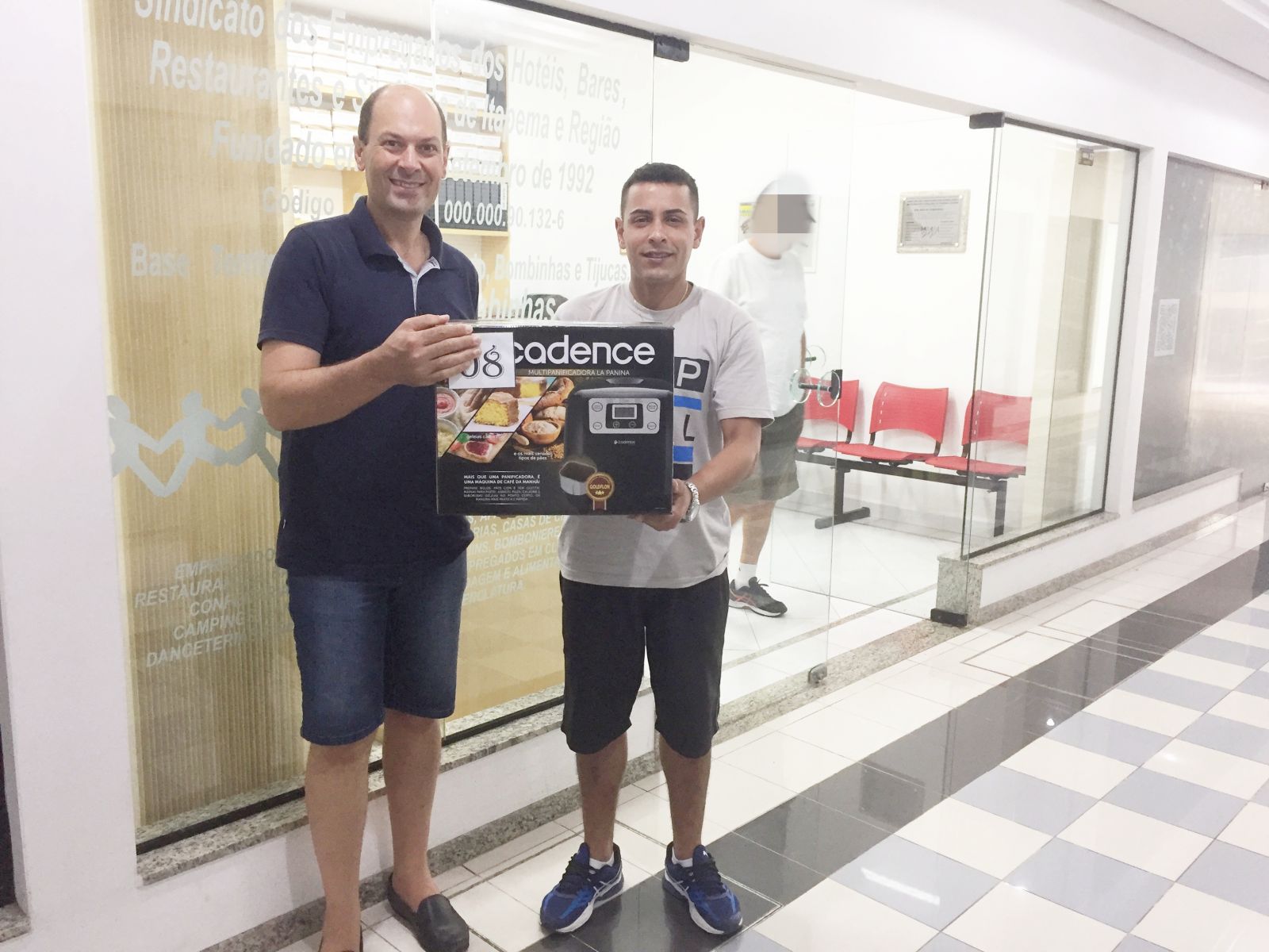 Nesta quarta feira de manhã (07 de fevereiro) GLEDISON DA SILVA MARTINS da empresa Petiscaria Ilha de Porto Belo, da cidade de Porto Belo, recebeu uma PANIFICADORA LA PANINA - CADENSE, sorteado na atividade formativa de encerramento de final de ano 2017, na sede da entidade no dia 22/12/2017, das mãos de nosso presidente Eliseu Luis Casanova, na Sub Sede em Bombinhas.
