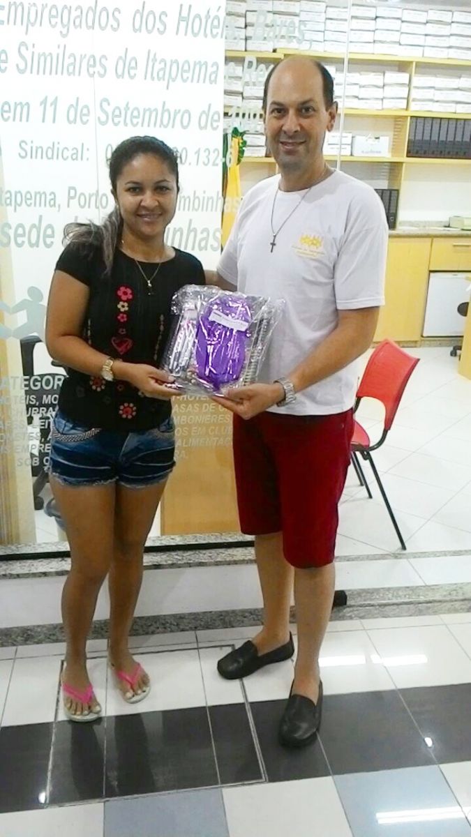 Presidente da entidade Eliseu, esteve durante o dia inteiro na Sub Sede de Bombinhas, a frente da entrega no bairro Bombas, aonde o relato dos companheiros e companheiras, quanto a qualidade do Kit Escolar que esta sendo distribuido. Vice Presidente da entidade Poncio, percorreu o Centro e os bairros Quatro Ilhas, Sertãozinho, Morrinhos, Conceição, Bombas e uma parte do bairro Mariscal que ainda faltou do dia anterior com a VAN INTINERANTE.