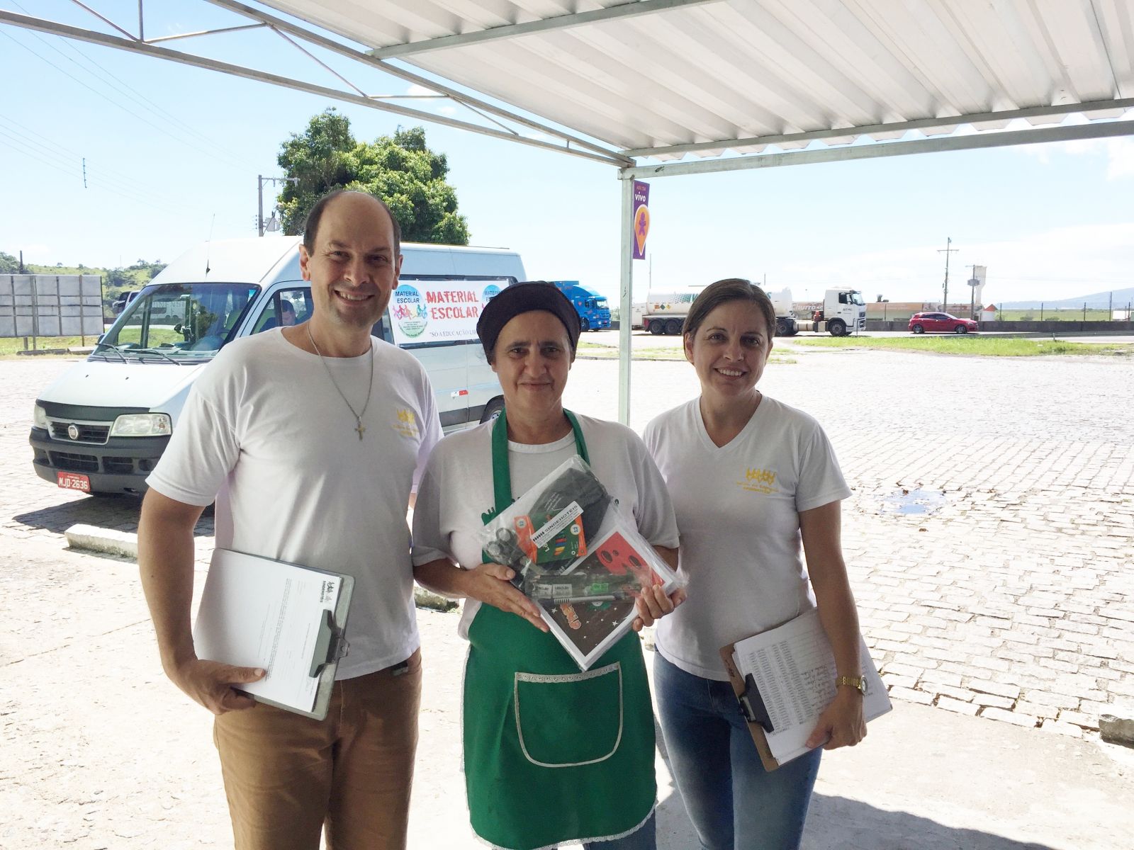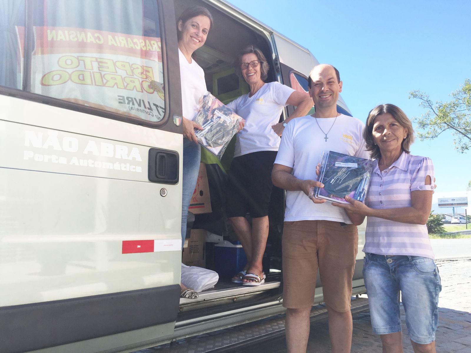 Presidente da entidade Eliseu, esteve durante o dia inteiro conosco percorrendo com aVAN ITINERANTE as cidades de Tijucas, Porto Belo e bairro Meia Praia da cidade de Itapema. A Sede de Itapema, está entregando também os kits escolares.