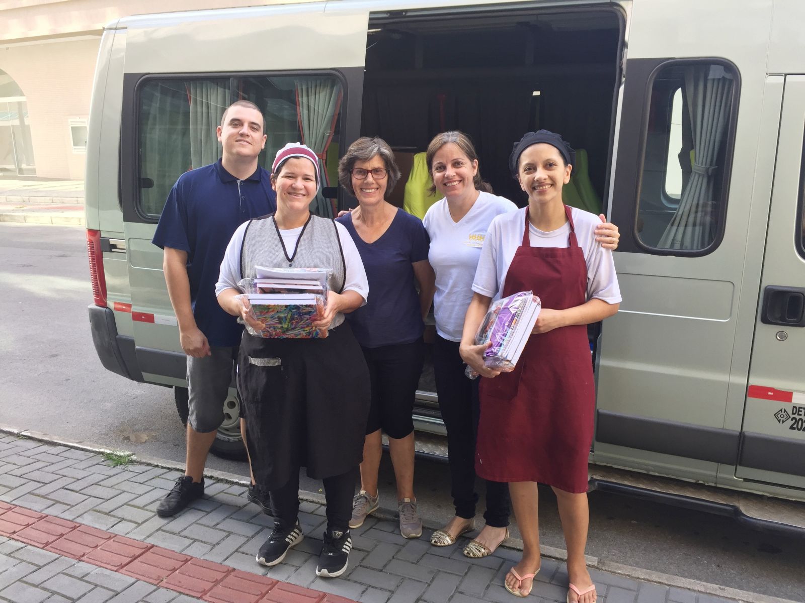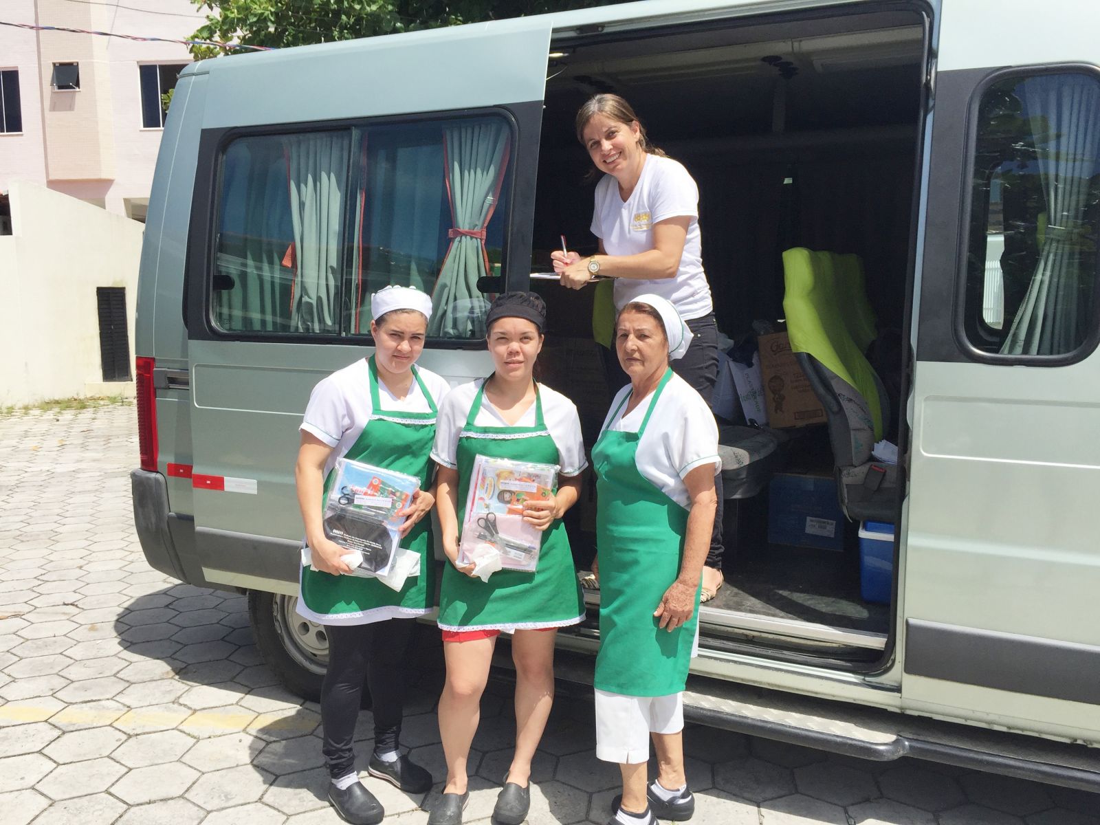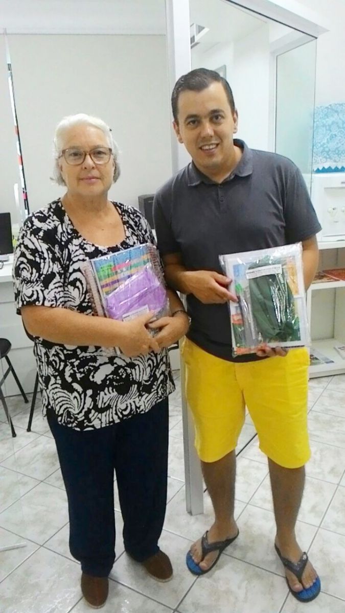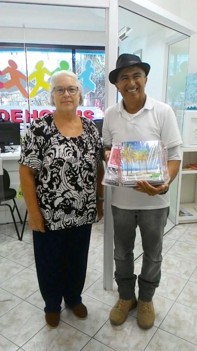 Presidente da entidade Eliseu e Diretora Gladys, estiveram na Sede entregando os kits escolares, e aVAN ITINERANTE percorrreu, hoje somente a cidade de Itapema.