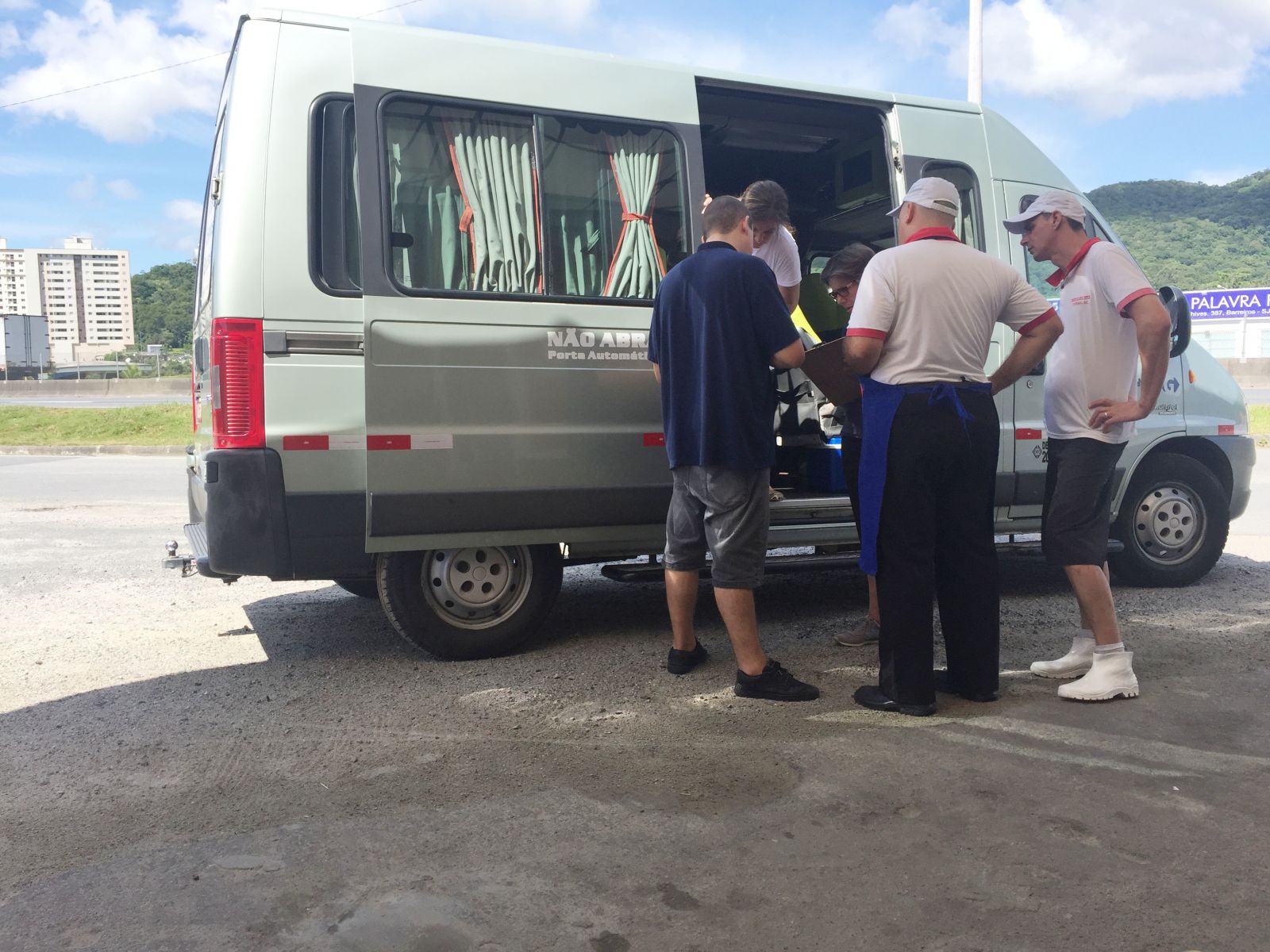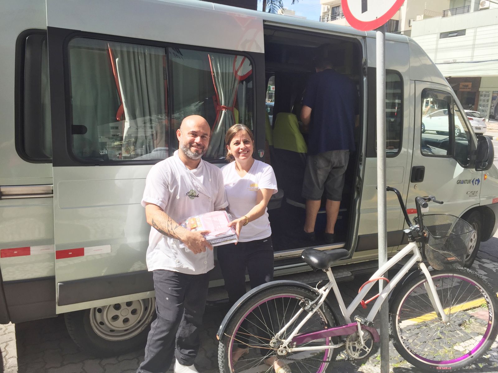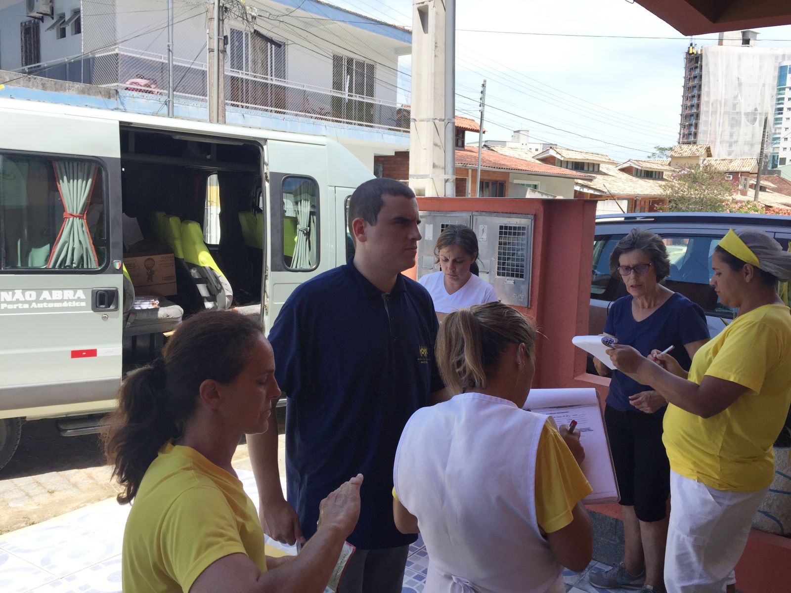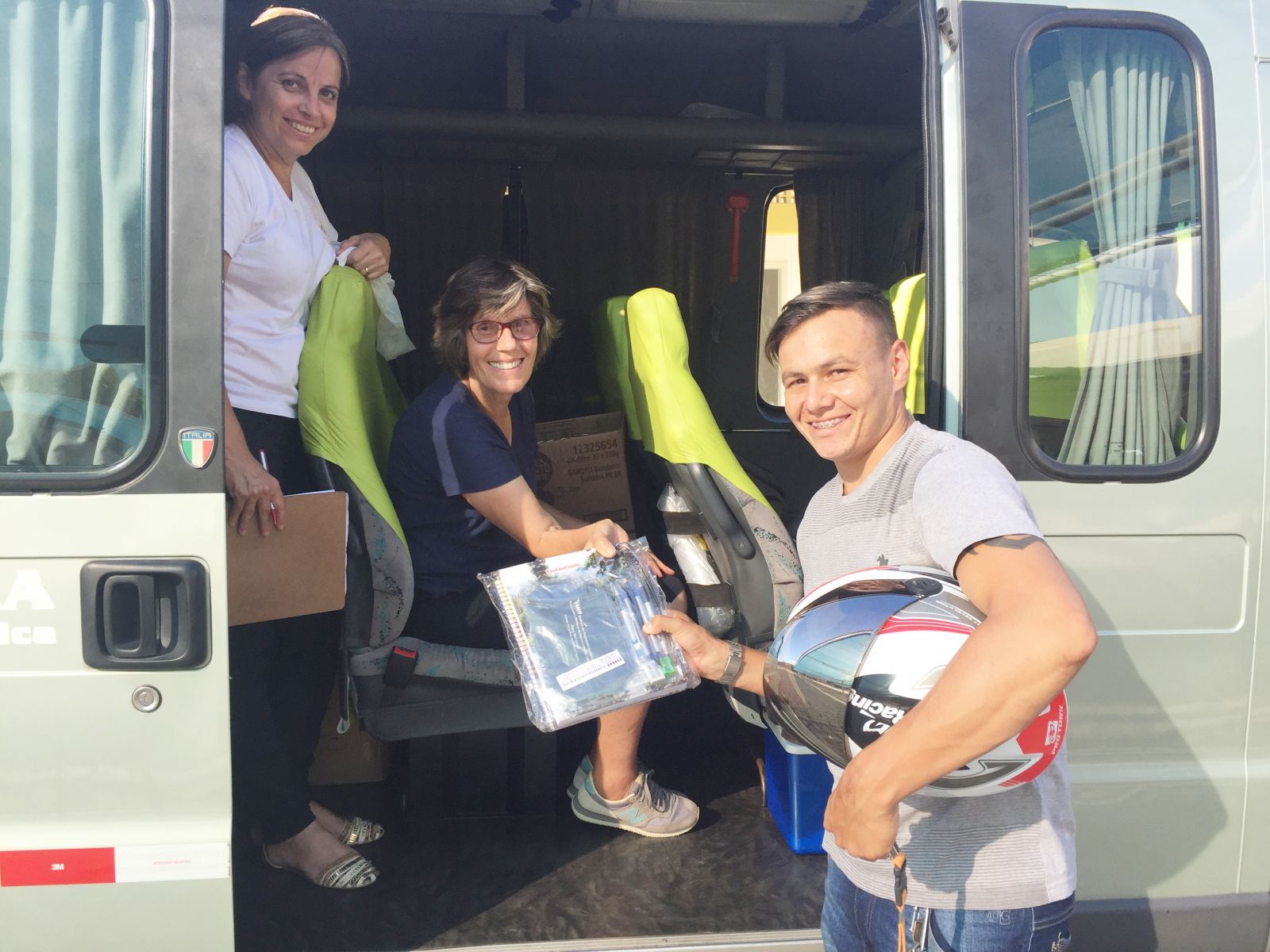 Presidente da entidade Eliseu e Diretora Gladys, estiveram na Sede entregando os kits escolares, e aVAN ITINERANTE percorrreu, hoje somente a cidade de Itapema.