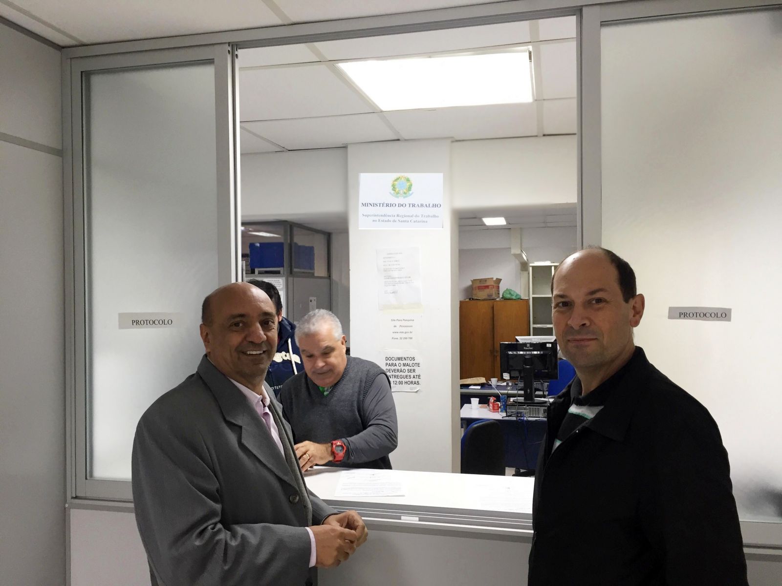 O Presidente Eliseu Luis Casanova esteve na tarde da última sexta-feira 15/06/2018 em Florianópolis, na Superitendência do Ministério do Trabalho e Emprego - SC, com a sua assessoria protocolando documentos.
