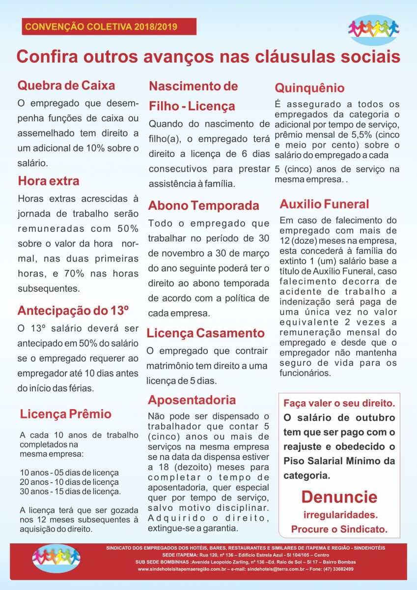 Divulgação do Informativo da Convenção Coletiva de Trabalho 2018/2019, percorre toda Base Territorial de Itapema, Porto Belo, Bombinhas e Tijucas para que todos tenham conhecimento da importância do sindicato para classe trabalhadora.