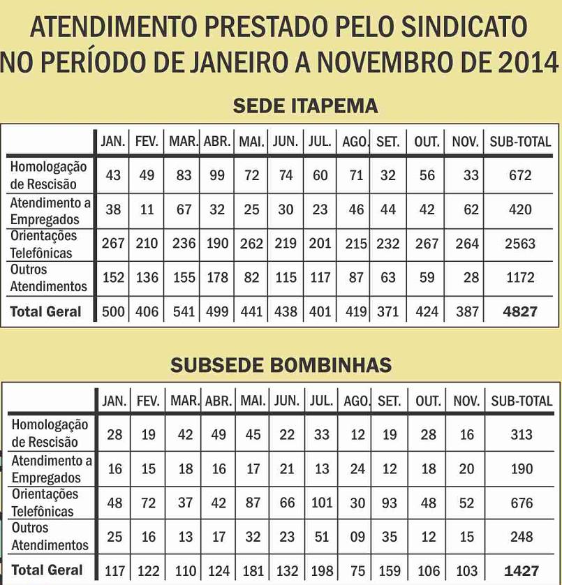 Durante este ano o Sindehotéis fez todo o possível para atender e orientar a categoria com a dignidade que ela merece. Na sede de Itapema foram realizados quase 5 mil atendimentos e na subsede de Bombinhas, 1.427 pessoas receberam orientação do Sindicato. “Ano que vem tenho certeza de que estaremos juntos na luta por melhores salários e condições de trabalho”, adianta o presidente do Sindehotéis, Eliseu Luís Casanova.