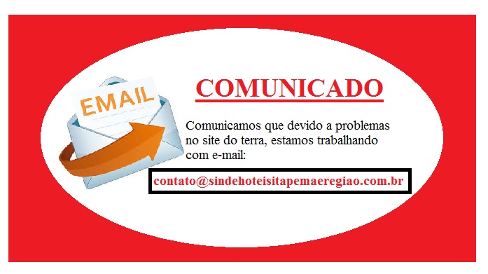 Devido a problemas técnicos no site terra, ao qual temos o e-mail: sindehoteis@terra.com.br, mensagens devem ser enviadas por este e-mail: contato@sindehoteisitapemaeregiao.com.br