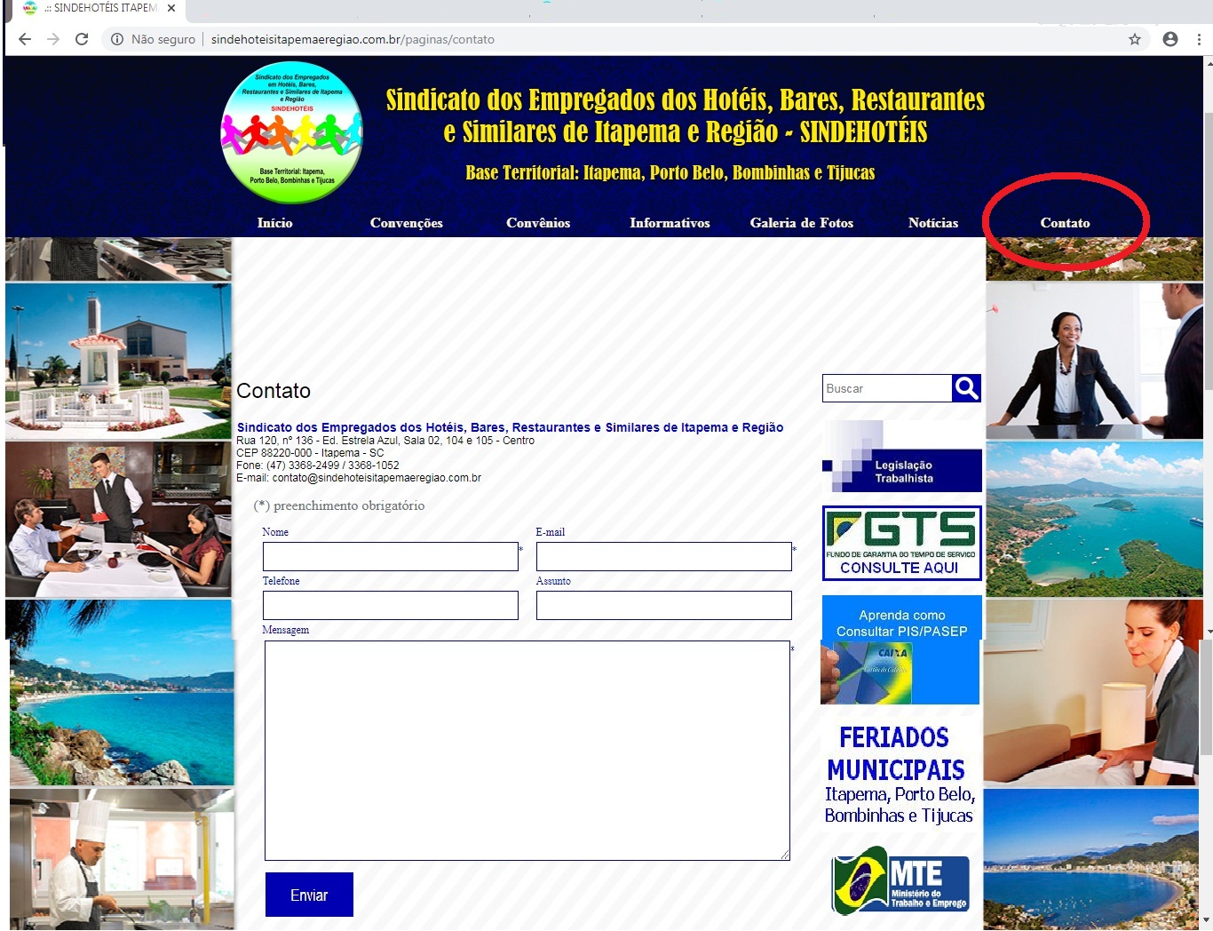 1º Passo - Clique em Contato no lado direito acima do site;