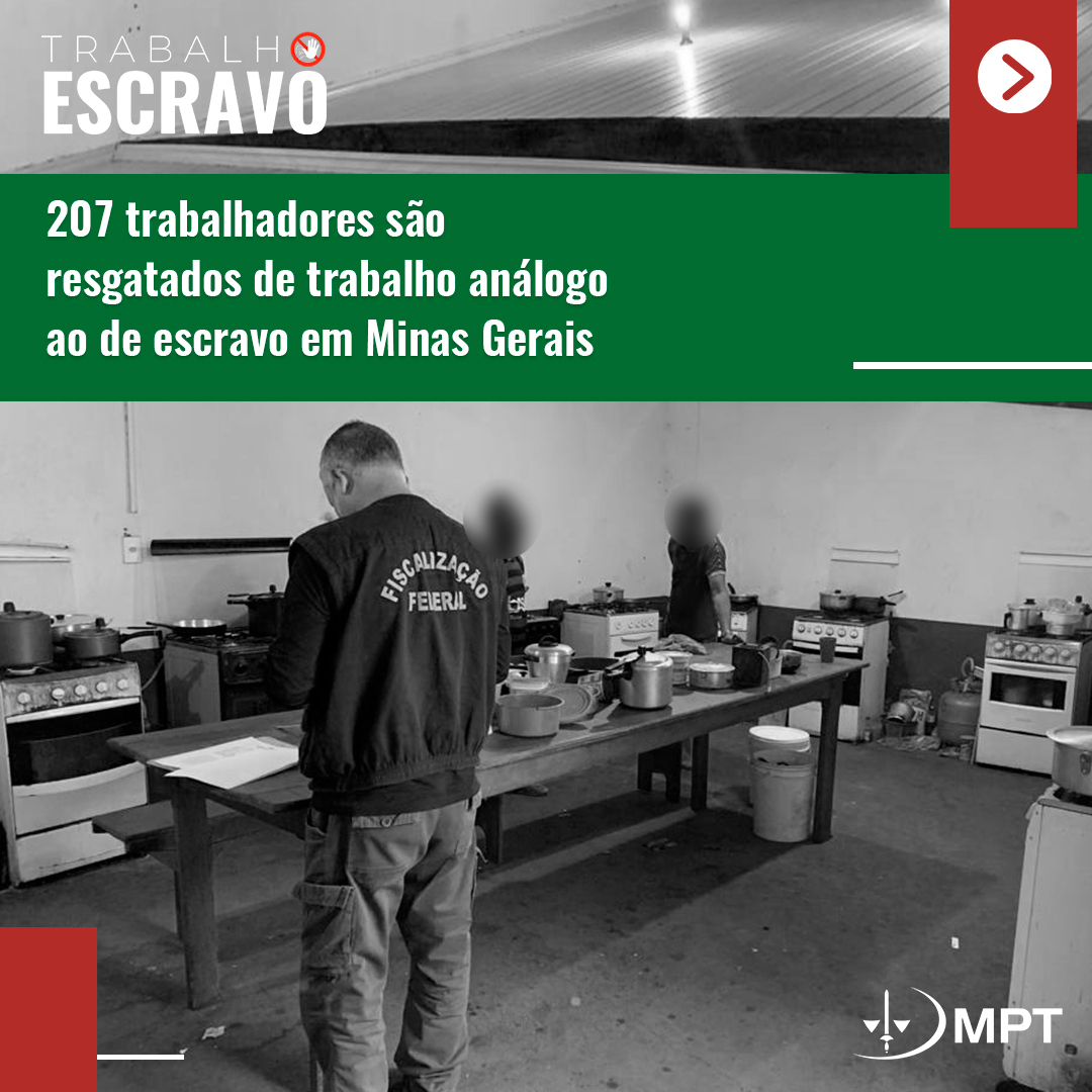 Uma série de operações de combate ao trabalho análogo à escravidão realizadas em Minas Gerais resgatou 207 trabalhadores, submetidos a condições degradantes de trabalho e moradia em colheitas de café, batata, alho e palha de milho. As operações são resultado de um trabalho conjunto realizado pelo Ministério Público do Trabalho (MPT/MG), Auditoria-Fiscal do Trabalho (AFT), Defensoria Pública da União (DPU), Ministério Público Federal (MPF), Polícia Rodoviária Federal (PRF) e Polícia Federal (PF).