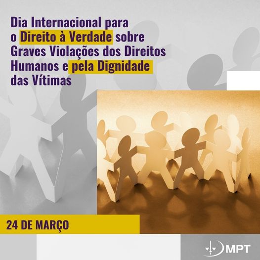 Neste 24 de março, Dia Internacional do Direito à Verdade sobre graves violações aos Direitos Humanos, o Ministério Público do Trabalho reforça que os direitos humanos são universais e funcionam como uma garantia jurídica que protege os indivíduos isolados ou em grupos.