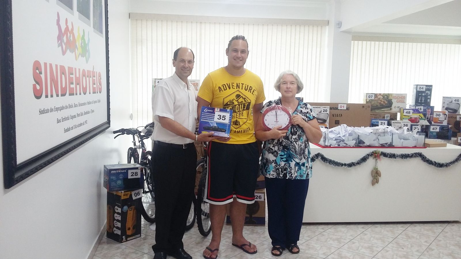 Nesta quarta-feira (23/12/2015) veio nos visitar na Sede do sindicato em Itapema, o companheiro ARIEL LUAN GOMES, funcionário da empresa Hotel Enseada Itapema, da cidade de Itapema, contemplado com um DVD e RELÓGIO DE PAREDE PERSONALIZADO, no sorteio do dia 21 de dezembro de 2015, que recebeu do Presidente Eliseu Luis Casanova e da companheira Dirigente Sindical Gladys Mabel Pracílio.