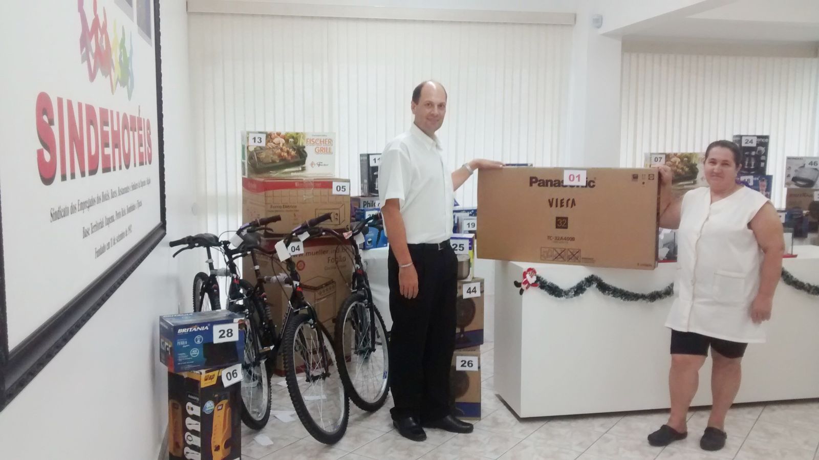 Nesta quarta-feira (23/12/2015) veio nos visitar na Sede do sindicato em Itapema, a companheira RITA DE CÁSSIA ADRIANO, da empresa Martinho's Restaurante da cidade Itapema, que foi contemplada com uma TV LED 32", no sorteio do dia 21 de dezembro de 2015, que recebeu do Presidente Eliseu Luis Casanova.