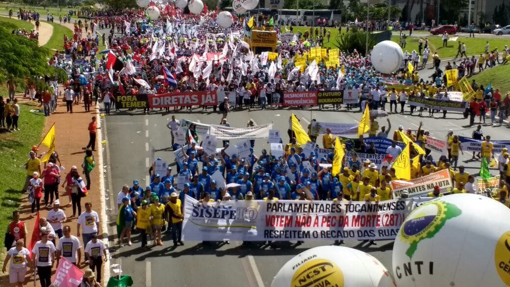 Mais de 30 ônibus de Santa Catarina foram rumo a capital federal para lutar contra as reformas trabalhista, previdenciária e por eleições diretas. Após mais de 30 horas de viagem as delegações iniciaram uma caminhada pacífica e foram recebidos pelos agentes com bombas de gás lacrimogêneo e efeito moral, spray de pimenta e muita violência.