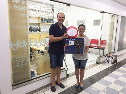 Nesta quarta feira de manhã (07 de fevereiro) TÂNIA MARIA RAMOS DA SILVA da empresa Restaurante ILha de Pirão, do centro da cidade de Porto Belo, recebeu um VENTILADOR 30 CM – BRITÂNIA + RELÓGIO PERSONALIZADO, sorteada na atividade formativa de encerramento de final de ano 2017, na sede da entidade no dia 22/12/2017, das mãos de nosso presidente Eliseu Luis Casanova, na Sub Sede em Bombinhas.