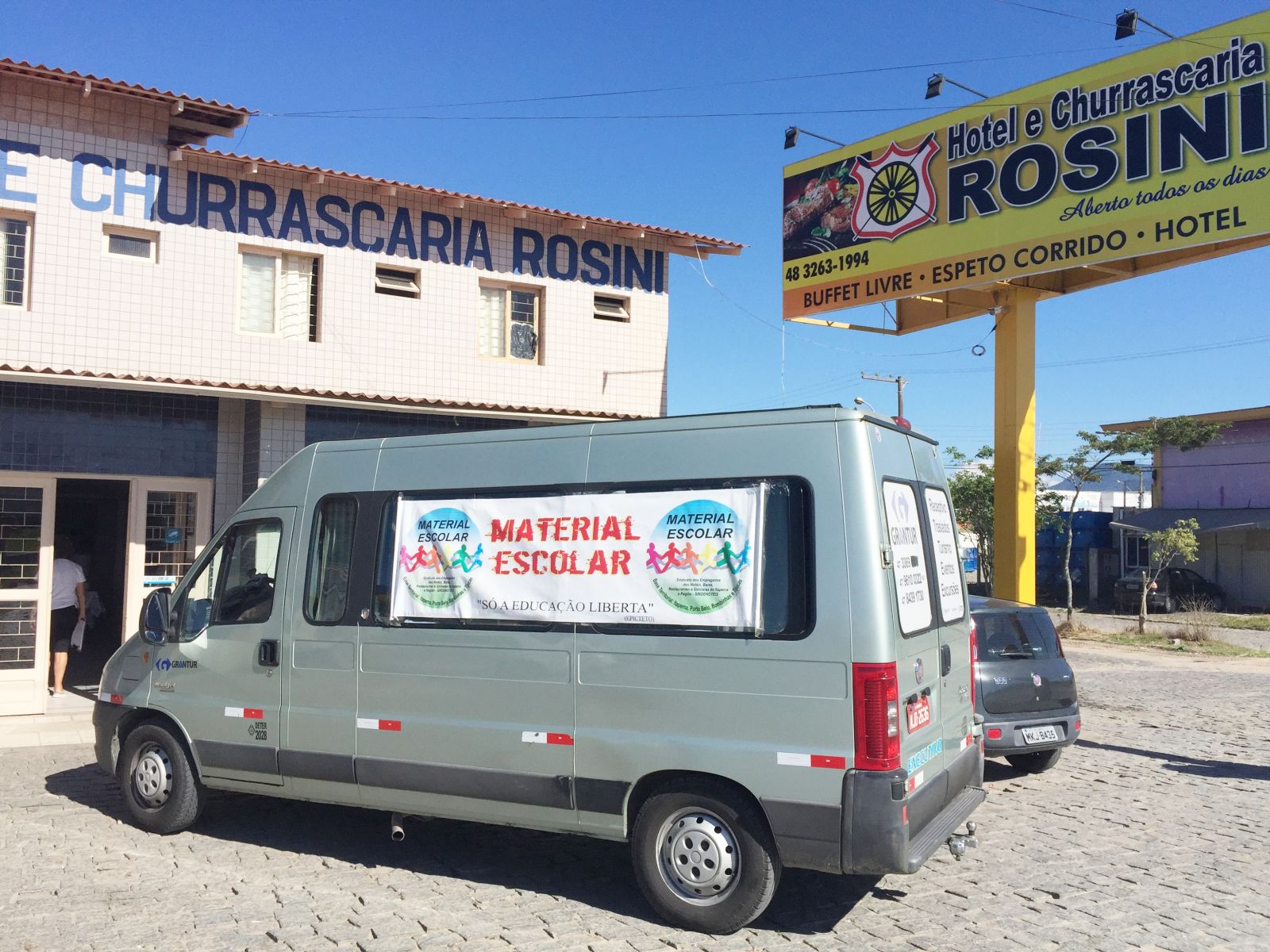 Presidente da entidade Eliseu, esteve durante o dia inteiro conosco percorrendo com aVAN ITINERANTE as cidades de Tijucas, Porto Belo e bairro Meia Praia da cidade de Itapema. A Sede de Itapema, está entregando também os kits escolares.