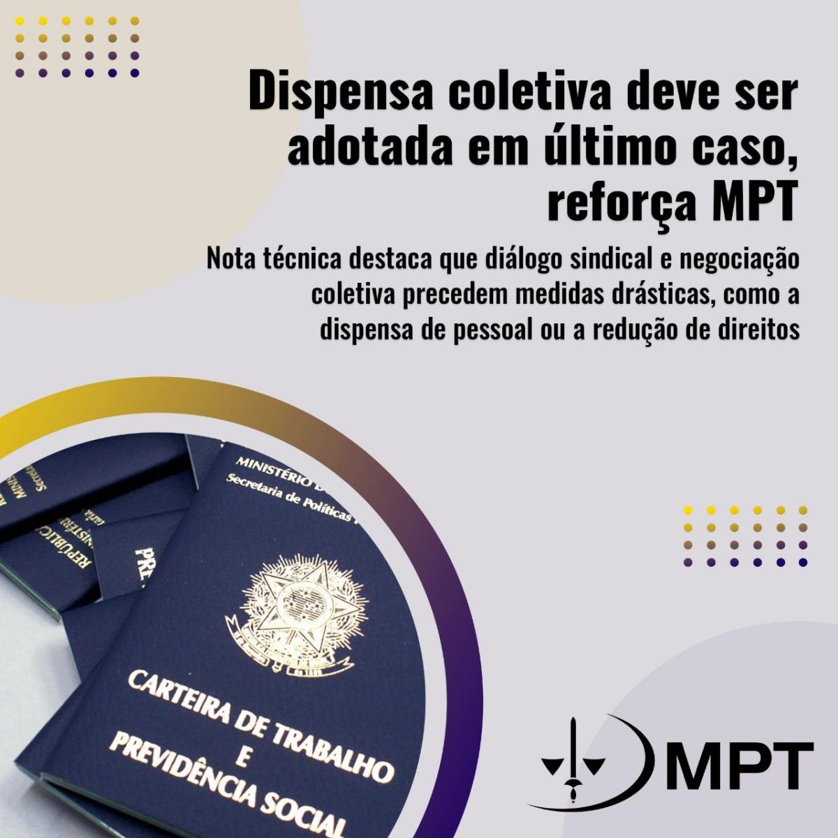 O Ministério Público do Trabalho, por meio da Coordenadoria Nacional de Promoção da Liberdade Sindical e do Diálogo Social (Conalis), emitiu nota técnica sobre dispensa coletiva e proteção social. Para o MPT, as demissões em massa devem ser adotadas apenas em último caso.